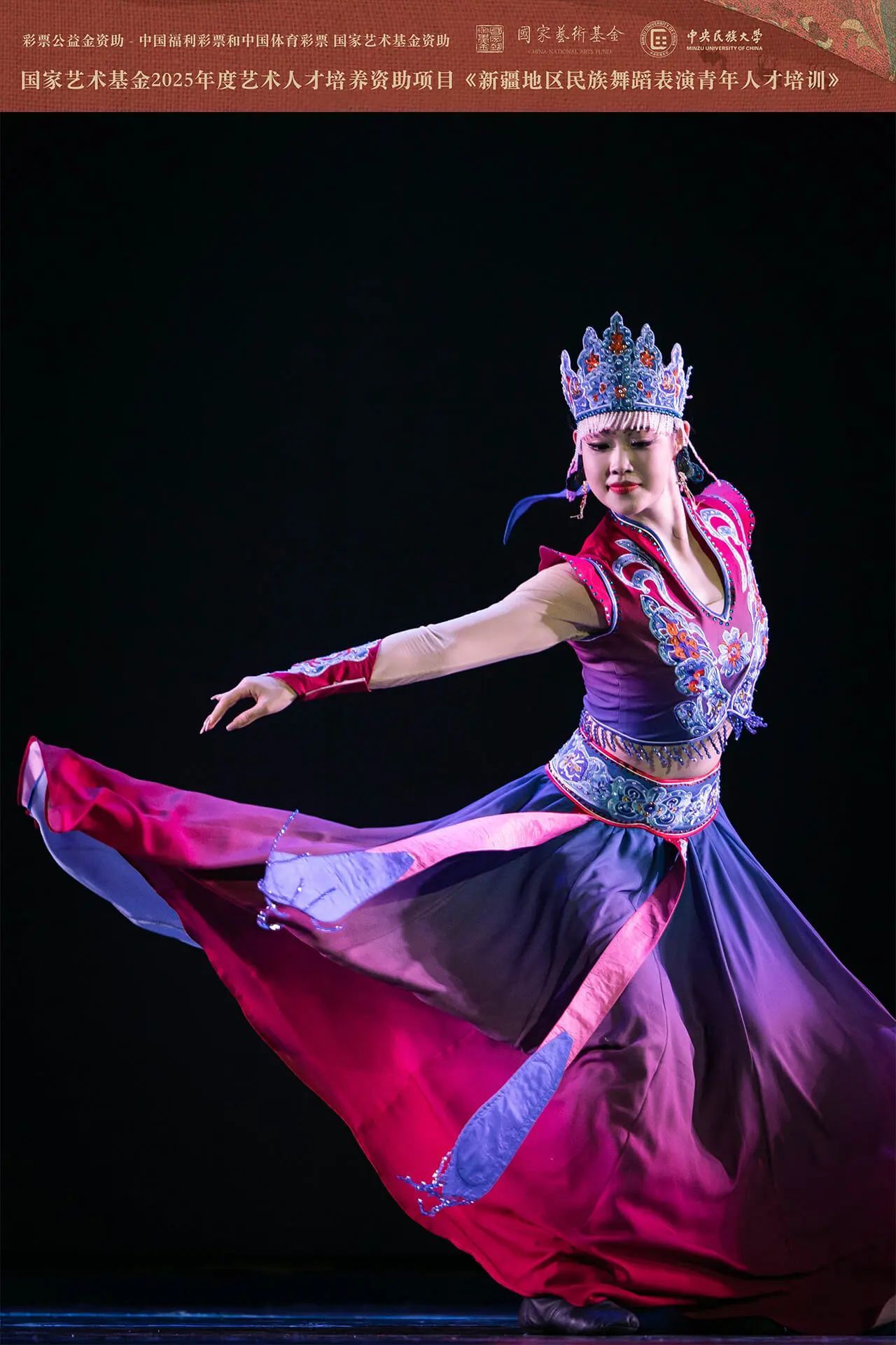 新闻网讯  日前,国家艺术基金2025年度艺术人才培训资助项目《新疆地区民族舞蹈表演青年人才培训》集中授课部分圆满落幕,学员们通过系统化、多元化的课程学习和表演实践,展现了丰硕的学习成果。本次学员成果汇报由前期课程教学内容与学员原创剧目构成,包含中国民族民间舞、中国古典舞、现代舞等训练组合,以及群舞学习剧目与独舞、双人舞原创剧目。