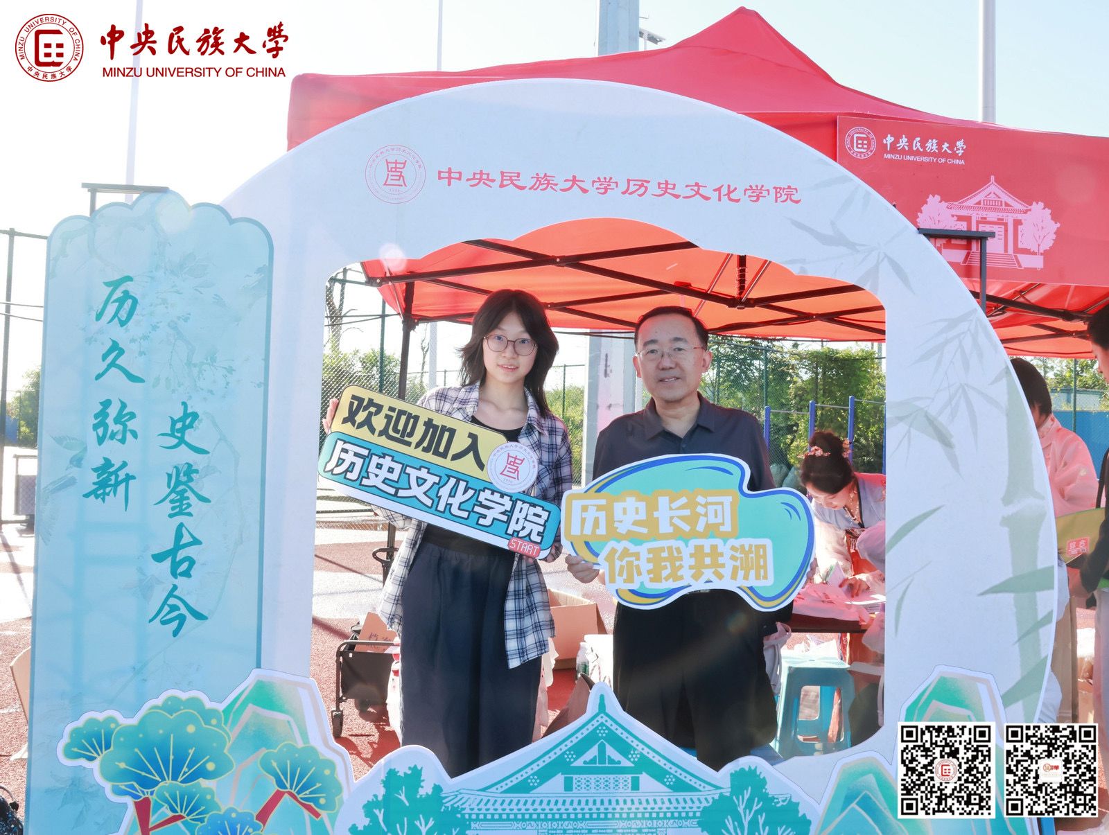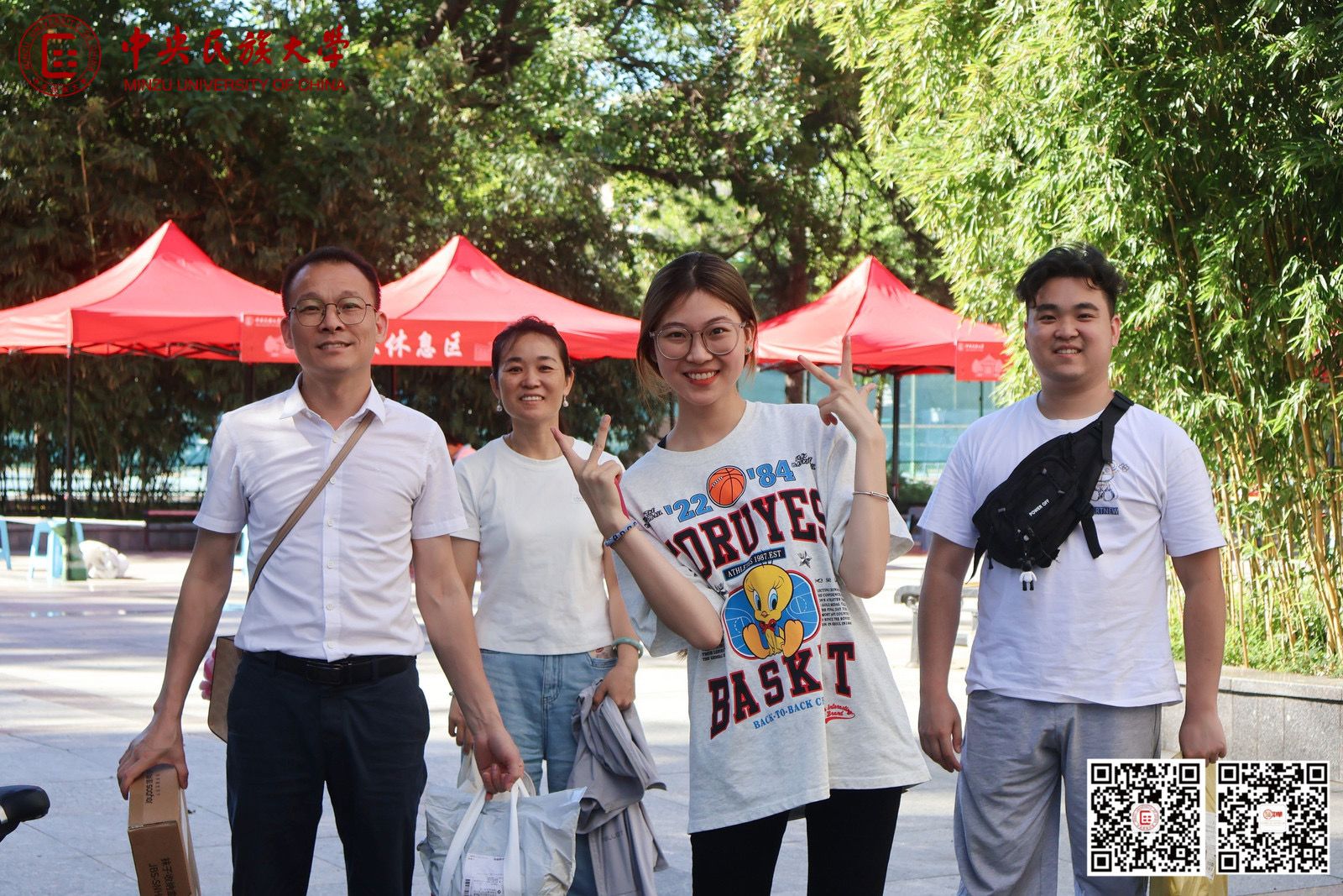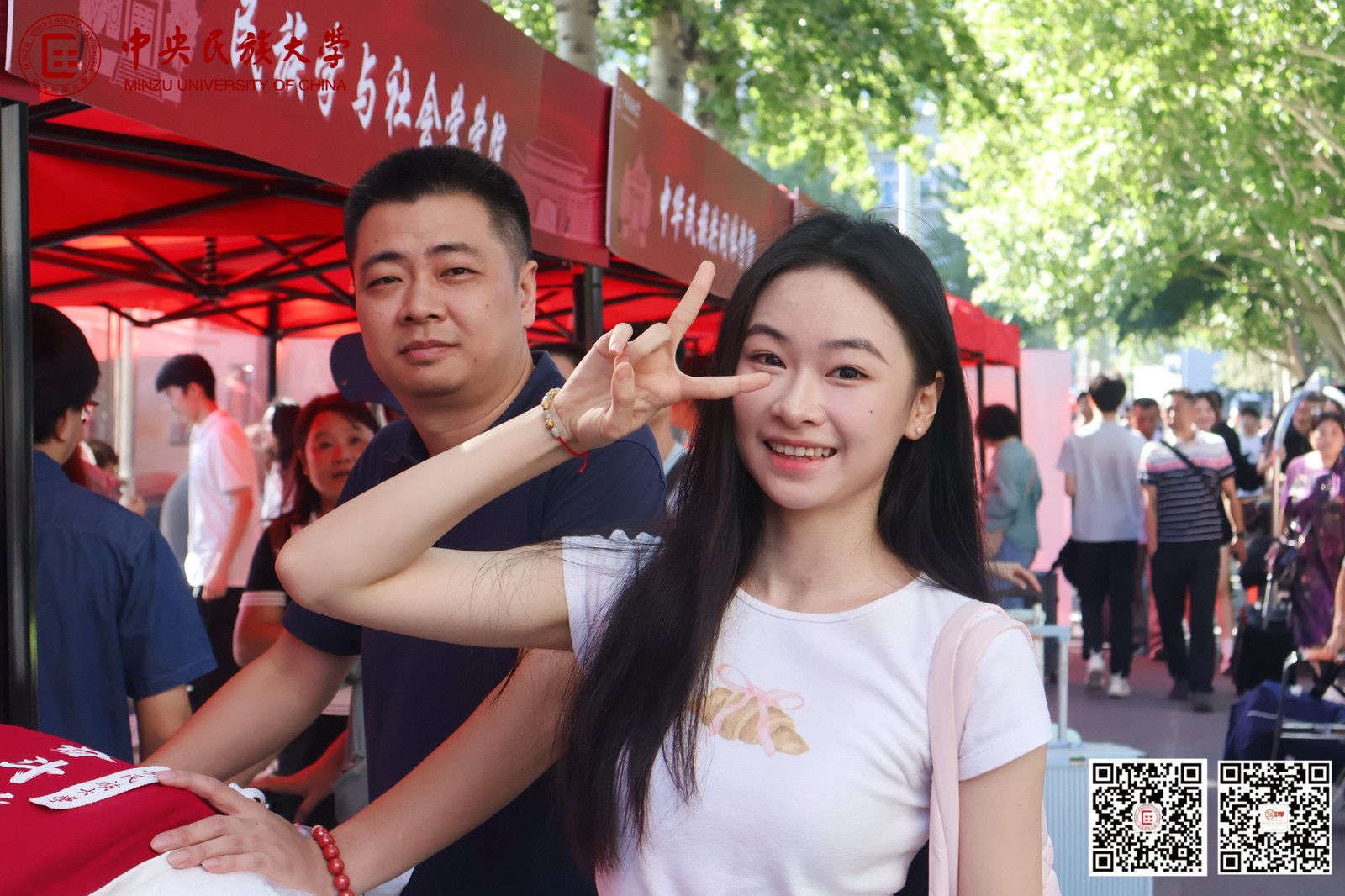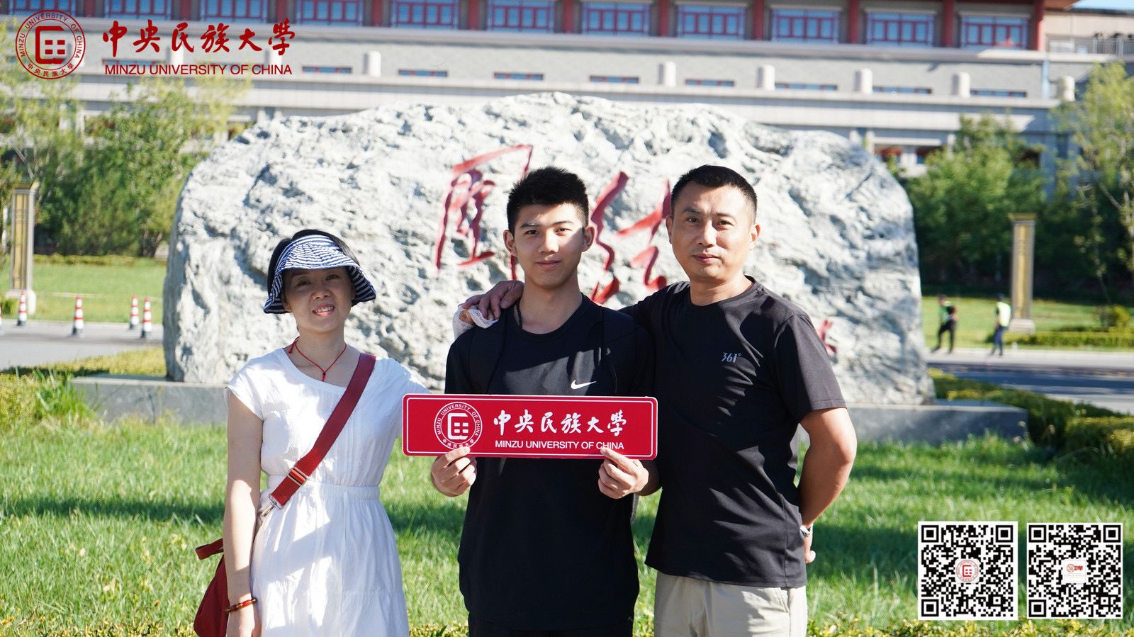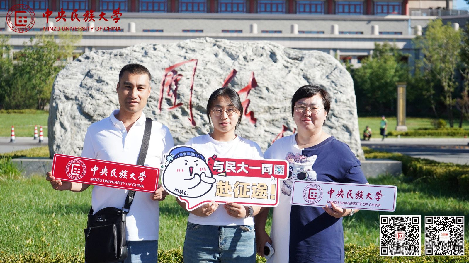“来,和校门合张影,这是你与民大的第一帧故事。”